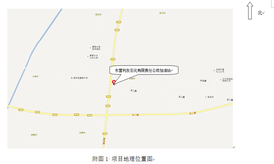 東營利友石化有限責任公司加油站位于董集鄉政府南東利路(老北二路)與董勝路(S316)交匯處。該加油站東面為民房,西面為民房與瀝青罐(罐已停用),距離南側公路約15m,路對面為經銷商店,北面為該公司的油庫(已停用),罐區與油庫的6個廢棄立式油罐相鄰,再往北為民房建筑。 |